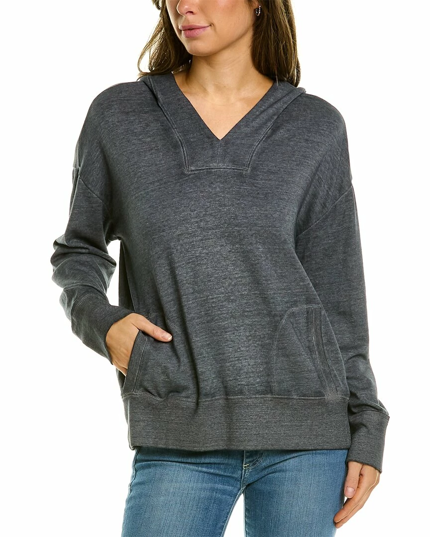 - Colby Burnout Hoodie In Mid H Grey With V-Neck, Dropped-Shoulder Sleeves With Split Cuffs, Dual Front Pockets And Ribbed Trim