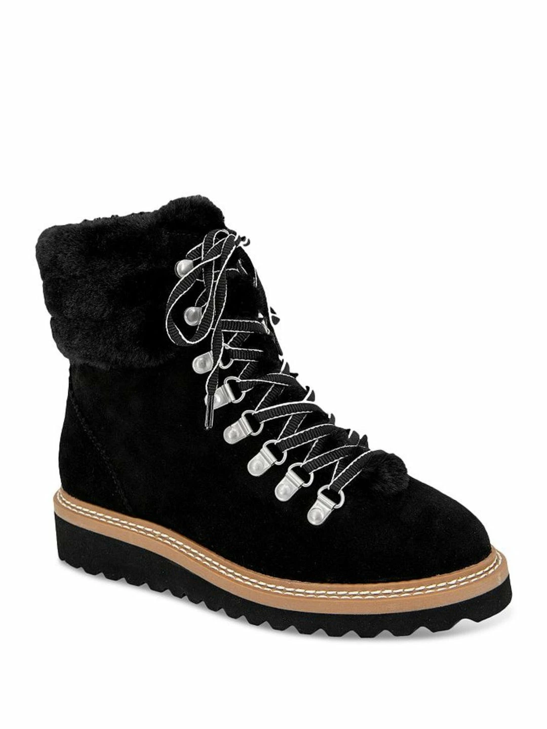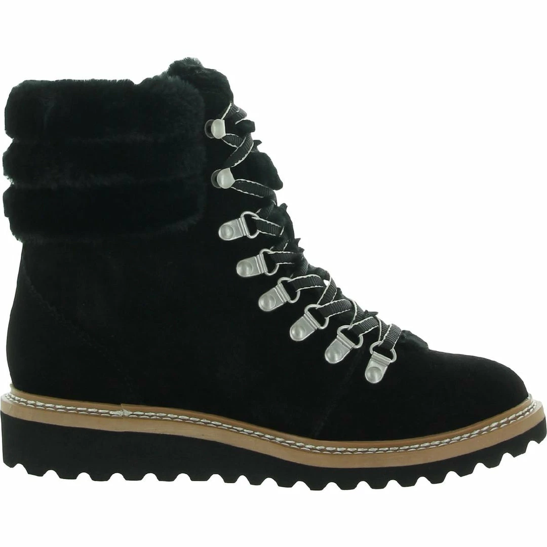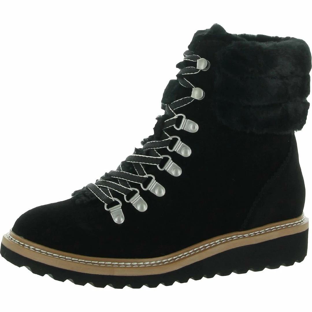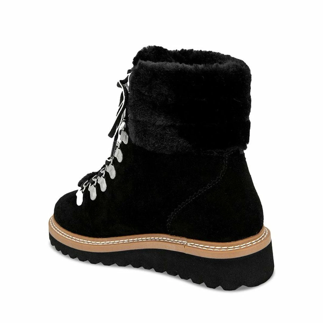 Step out in style this season with the Evita bootie by Splendid. These Hiker inspired boot are made of suede uppers with faux fur trim details. They feature a lace up closure for snug fit and man made outsoles. Wedge heel measures 1″ and shaft measures 5″.