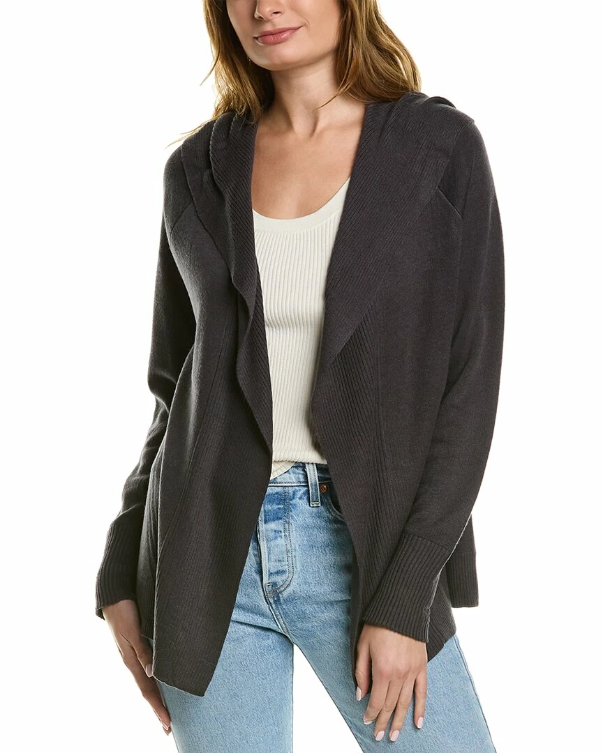 - Isla Cashmere-Blend Cardigan In Lead With Hooded Back And Rib Trim