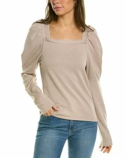 - Josephine Sweatshirt In Latte With Square Neckline And Puff Shoulders