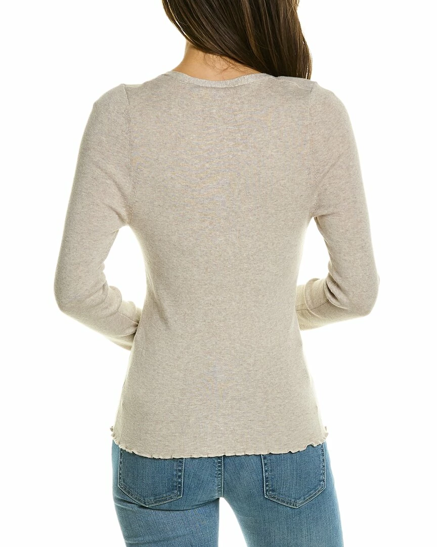 - Layton Silk-Blend Henley In Heather Latte With Lettuce Edge Trim At Cuffs