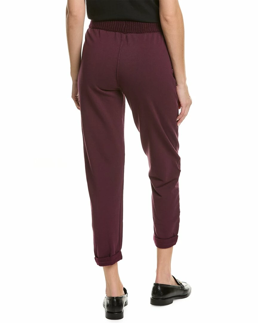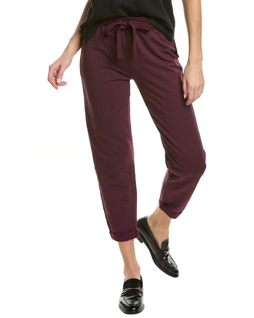 - Shea Sweater Mix Jogger Pant In Black Cherry With Elastic Drawstring Waist, Ribbed Trim And Rolled Cuffs