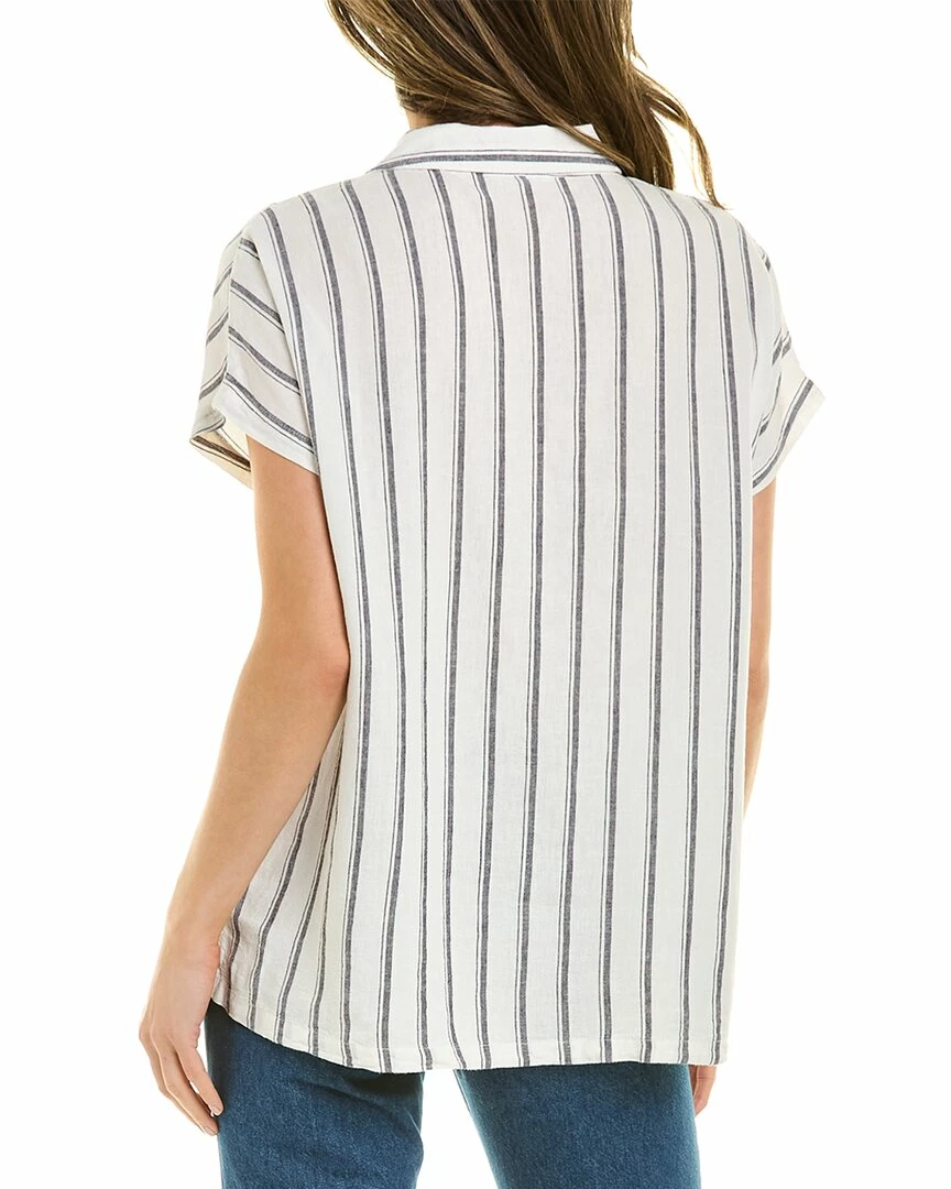 - Thira Linen-Blend Top In Rasmus Stripe With Left Chest Pocket