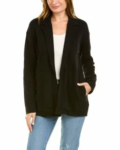 - Wool-Blend Sweater Jacket In Black With Notch Collar, Dropped-Shoulder Sleeves, And Dual Front Pockets